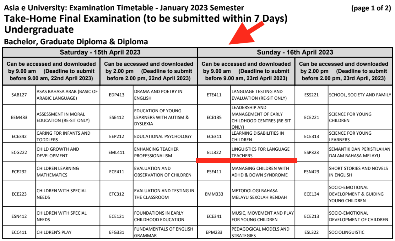 (E) Examination Timetable